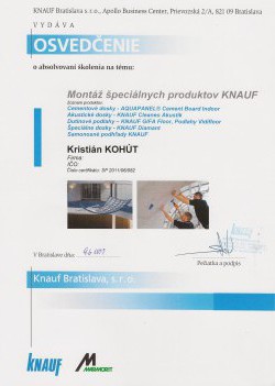 Naša dlhoročná skúsenosť a používanie len tých najkvalitnejších materiálov podĺa ich technologických postupov sú garanciou najvyššej kvality.Hlavným cielom našej firmy je maximálna spokojnosť klienta a preto veríme, že pokial prejavíte záujem o naše služby, dokážeme naplniť Vaše predstavy.Neustálym preškolovaním a sledovaním najnovších trendov v oblasti suchej výstavby sme garanciou kvality.
